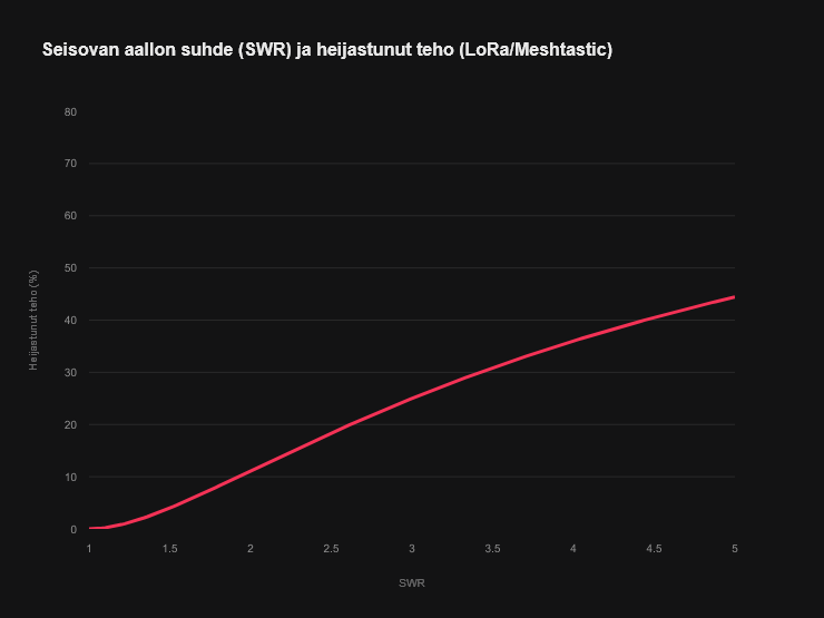 Huono SWR tarkoittaa, että osa lähetystehosta heijastuu takaisin lähettimeen, mikä heikentää kantamaa ja voi kuumentaa LoRa-laitteen RF-piiriä ja lopulta vahingoittaa sitä.